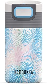 Kambukka Etna Mug isotherme. Le mug thermos Etna garde votre boisson chaude pendant 5 heures et froide pendant 11 heures - 300 ML - Peacock Feathers - 3 in 1 lid - Snapclean® technology
