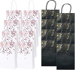 Jinlaili 12 Pièces Sac Kraft, 15 x 8 x 21 cm Sac en Papier Cadeau, Sac Papier Kraft avec Poignée, Bronzage Kraft Sac Cadeau, Pochettes Cadeaux Recyclable pour Noël Mariage Anniversaire Fête (Blanc)