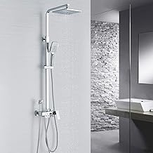kisimixer système de douche en laiton, douche pluie douche colonne de douche ensemble de douche avec 3 fonctions, ensemble de douche avec tige de douche réglable, pomme de douche, douchette,chrome