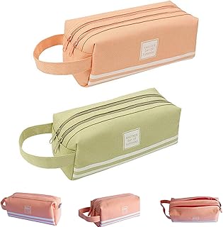 KidsPark Trousse Scolaire Avec Double Grand Compartiment, Trousse Grande Capacité Avec Poignée Trousse à Crayons Garçons Filles étudiants Femmes Hommes Enfants Adolescents Adultes, Rose
